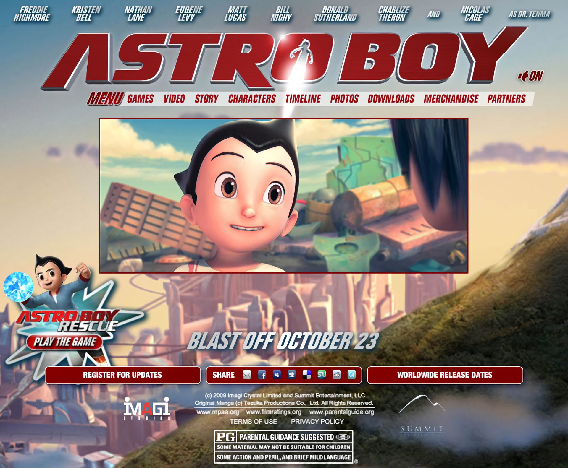 In 2009, Jason 'Gigapede' Siadek from 3Pin Media reached out to me for a fun little project: a promotional Flash game called Astro Boy Rescue, tied to the Astro Boy movie featuring an all-star cast: Nicolas Cage, Kristen Bell, Donald Sutherland, and Charlize Theron. (Sadly, I never got a chance to hear Nicolas Cage dramatically narrate my code.)