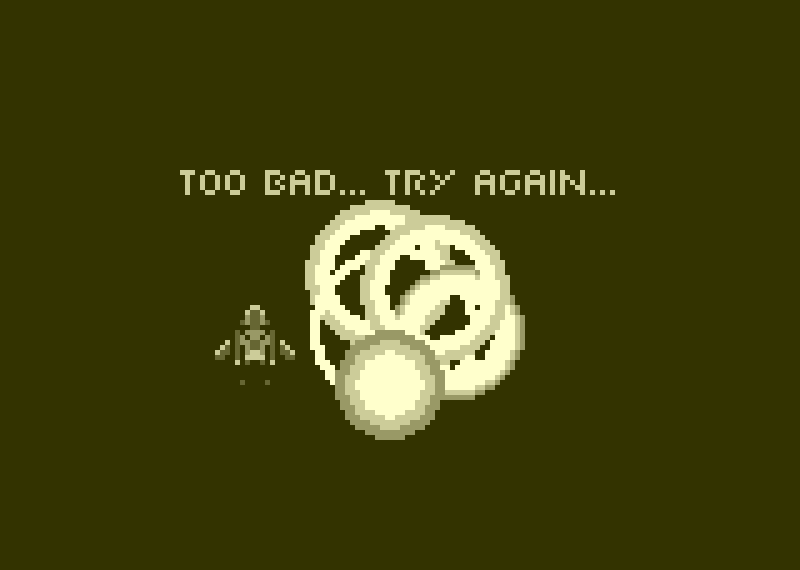 I wanted this game to feel like pure chaos in the best way possible: meteors everywhere, explosions left and right, and a screen shake effect that made every hit feel extra satisfying. Nowadays, screen shake is in almost every action game, but back then? It was kind of a big deal. With only 5 colors, Meteor Busters managed to create a punchy, retro pixel-art aesthetic, using generally 4 colors for the backgrounds (based on remixed and pixelized Google Maps images) and saving the brightest one for important elements like your ship, meteors, and the interface.