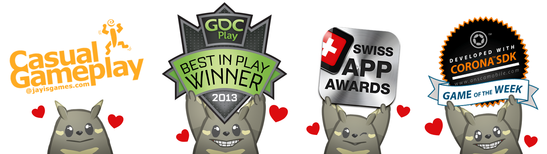 Other awards received in 2012 include: Corona SDK: App of the Week, JayIsGames: Mobile Puzzle Game of the Year (3rd place), and iPadevice: Game of the Week.