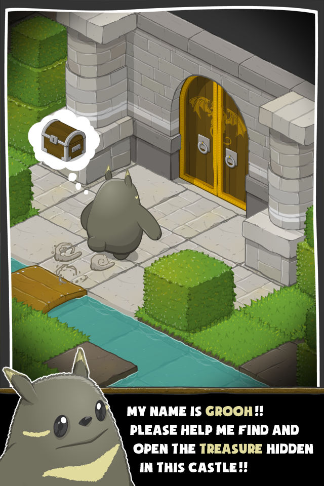 When Grooh!! was released, one of its key features was "Explore 99 challenging rooms... and discover a crazy final twist!". The twist turned out to be that the treasure Grooh discovered in the 100th and final room was locked! He couldn't open it, leaving many players confused or even disappointed by this unexpected ending, especially since the last levels were quite challenging.