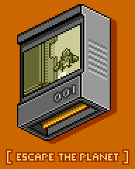 Escape the Planet was released in 2003 and served as the prequel to Meteor Busters. It was also the first complete game running on the Pixel Boy virtual console and shared many similarities with Meteor Busters. In Escape the Planet, meteors were heading straight for planet Centra. Players had to rescue as many people as possible and bring them to Station AT-108, a safe haven floating above the clouds and beyond the atmosphere, dodging and blasting through a storm of meteors along the way.
