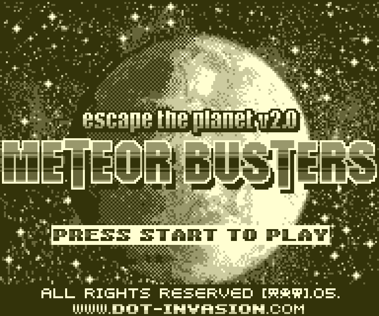In november 2004, I started working on a sequel to Escape the Planet: it was called Meteor Busters. From my perspective, it was a better game in every way: it really defined the kind of game I wanted to develop for the Pixel Boy: a quick, good looking, engaging and challenging game, enhanced by a beautifully retro soundtrack.