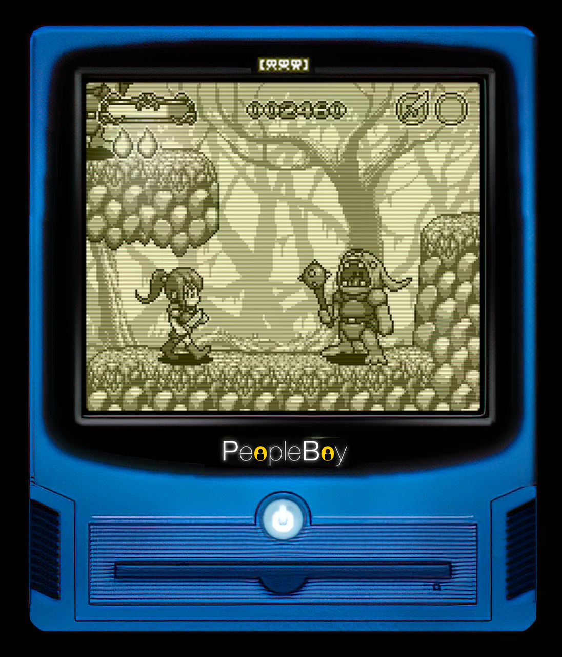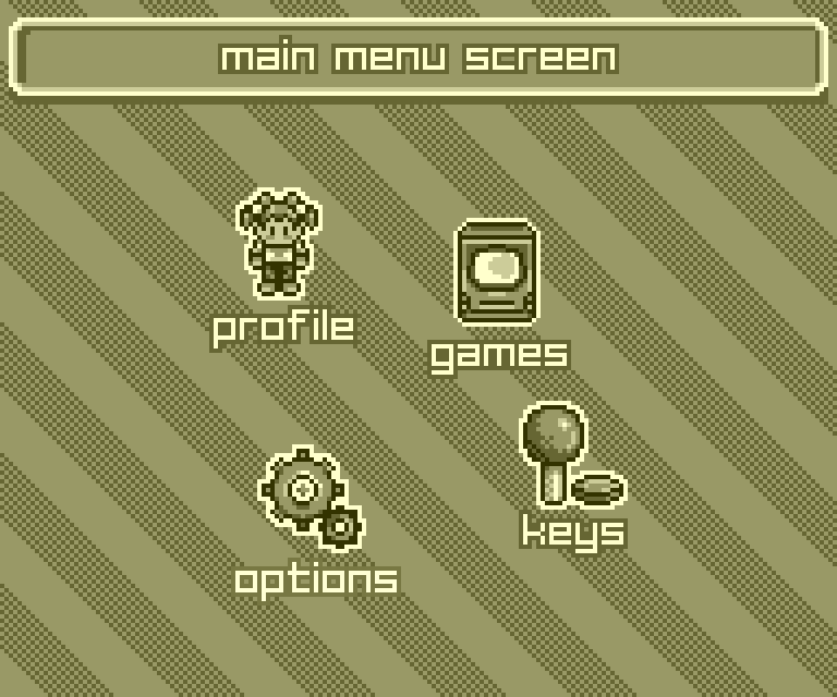 Since People Boy was meant to be a platform for different games created by others (or at least with a little teamwork), I designed a sleek, computer-like interface to tie everything together. Players could browse menus, set up profiles and usernames, configure controls, tweak per-game settings, and of course, launch "installed" games. It's actually pretty much what modern game consoles do today.