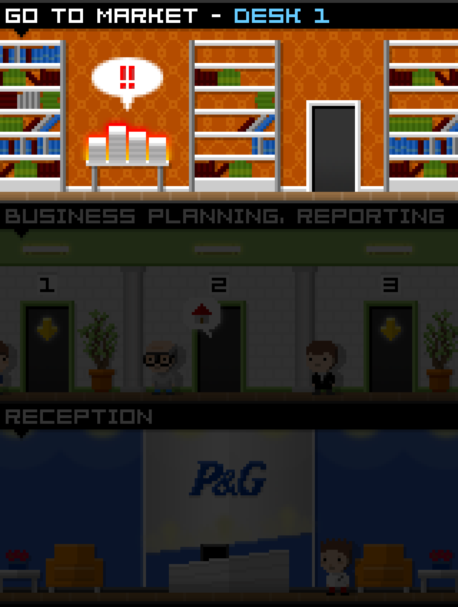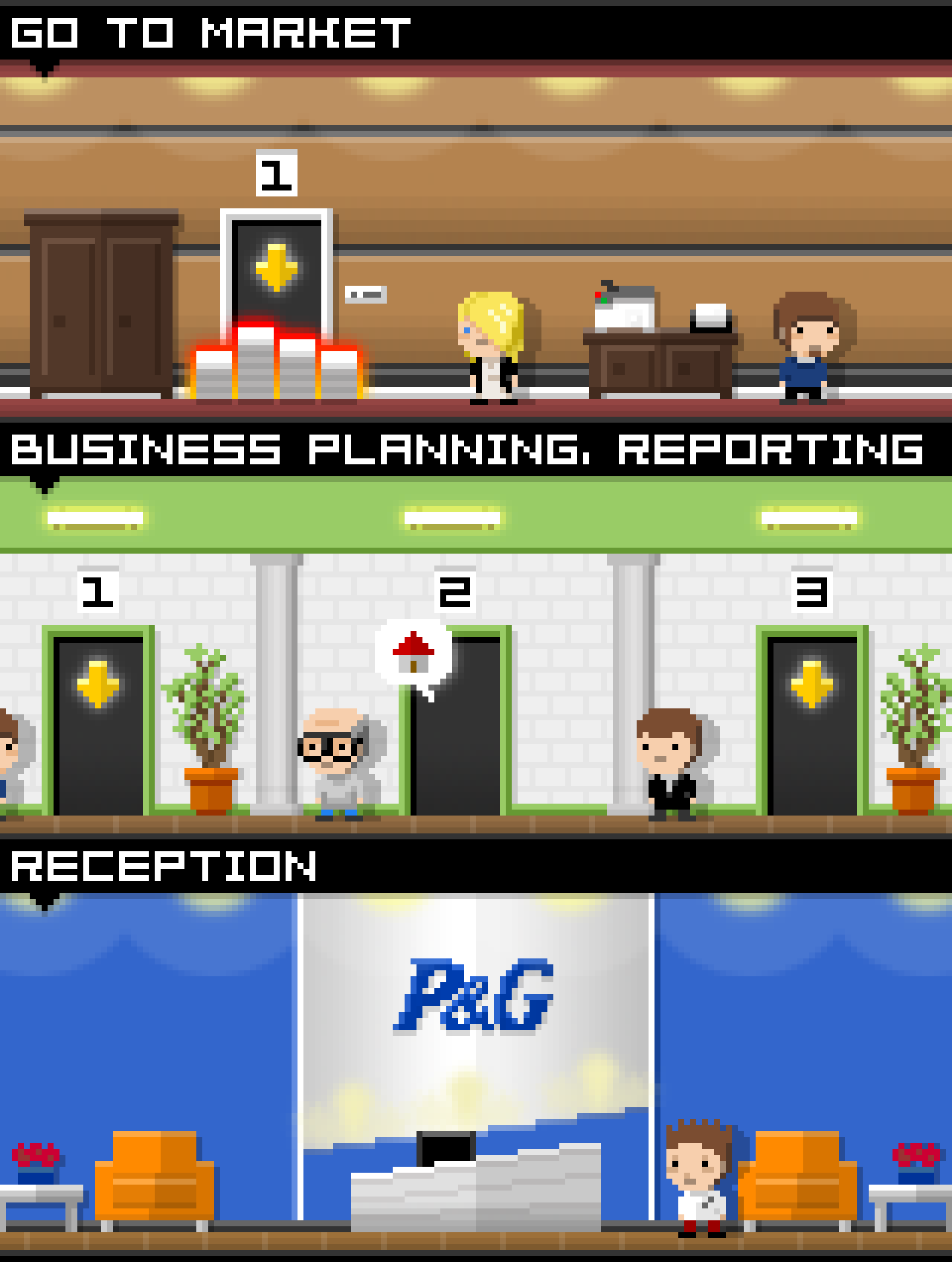 Tiny Tower was a popular iOS game where players built and managed a skyscraper, adding floors, attracting residents, and running businesses while earning in-game currency to expand their tower. Inspired by this formula, WitchLake Studio explored the idea of adapting it for Procter & Gamble, envisioning a game where players would construct and manage a virtual P&G headquarters. Each floor would represent different brands and departments, allowing players to oversee production, marketing, and research while learning about the company's vast product lineup in a fun and engaging way.